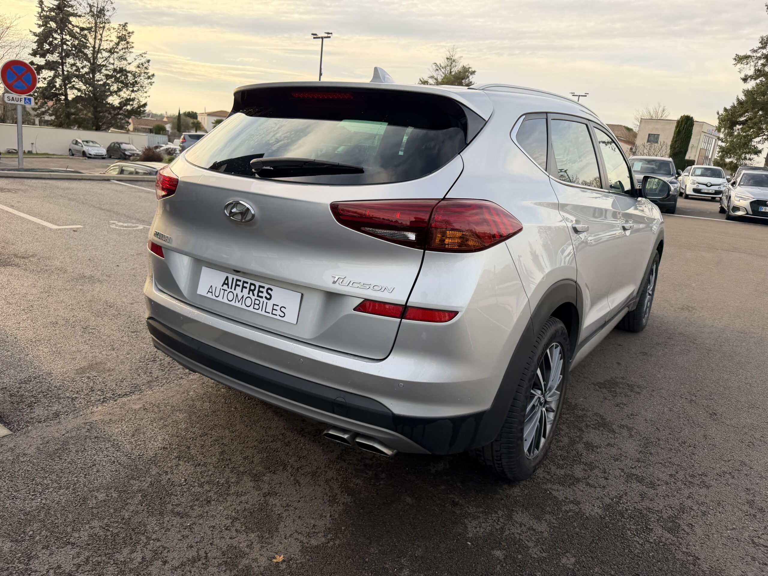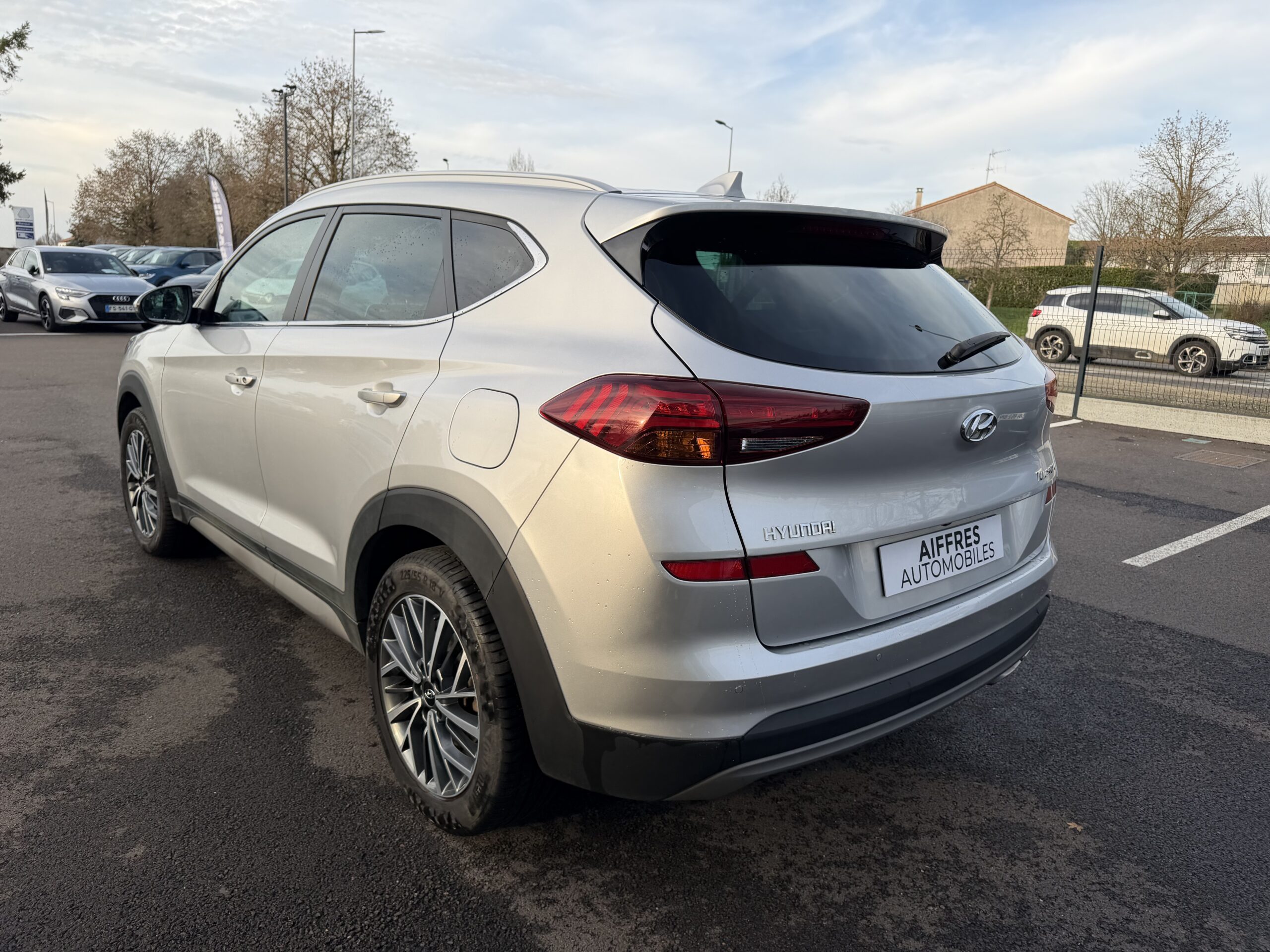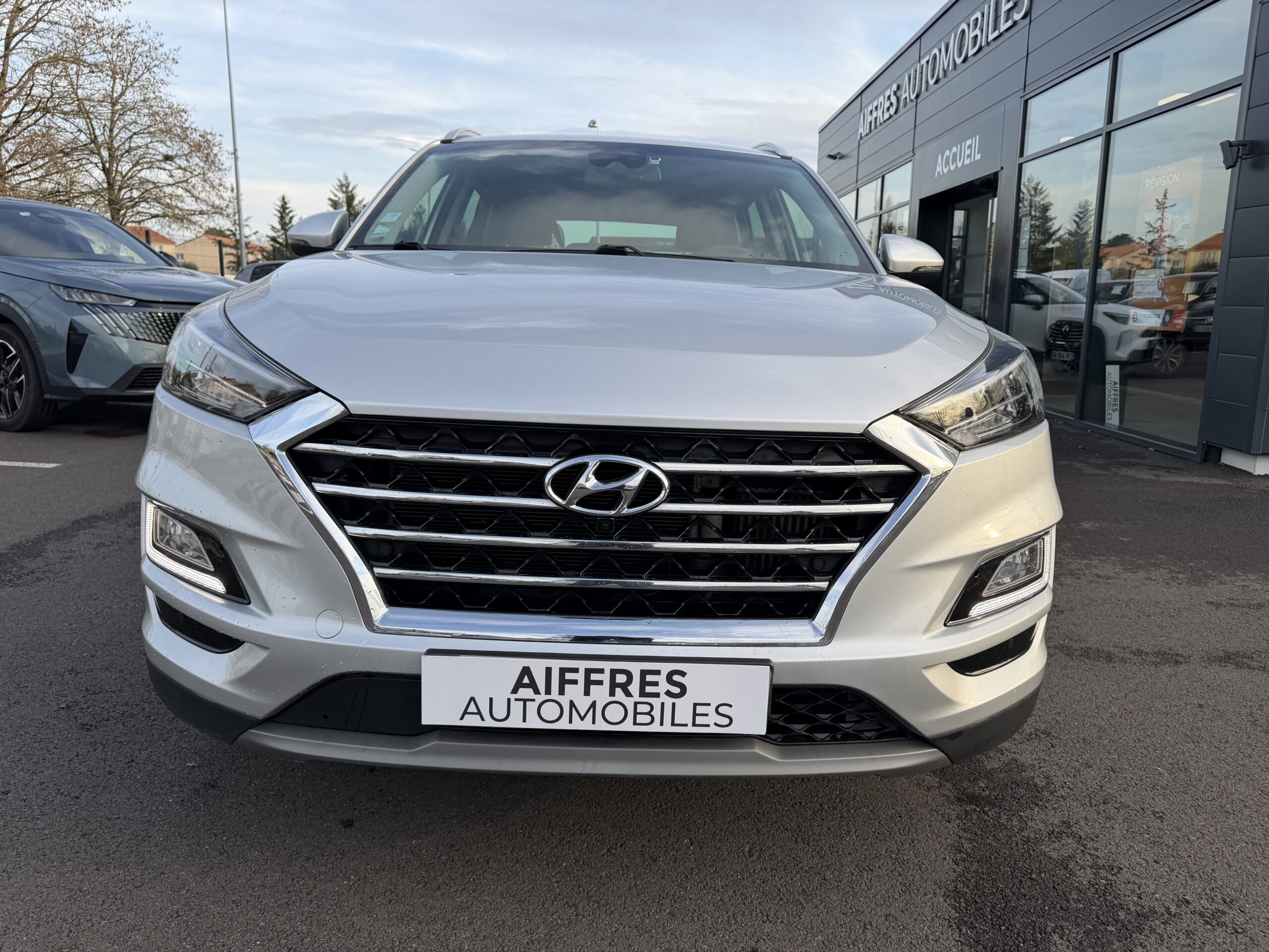 Hyundai Tucson 1.6 CRDI – 136 S&S EVAP PREMIUM tout-terrain, gris clair, 7 cv, 5 portes, première mise en circulation le 10/10/2019, garantie 6 mois.